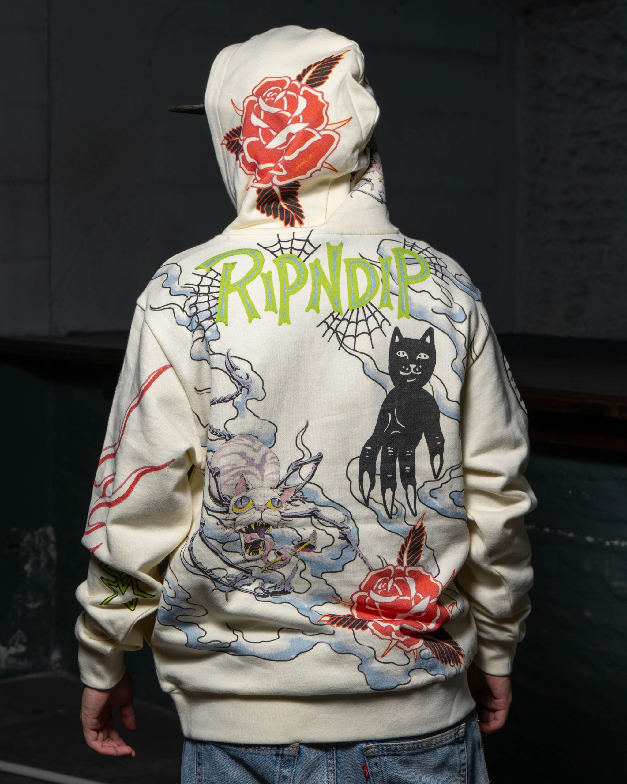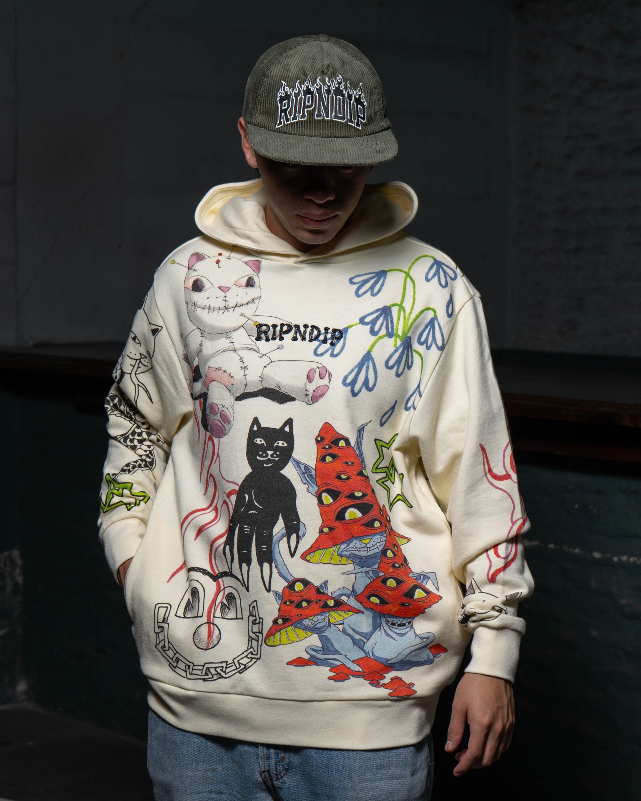 B6-094 RIPNDIP SUDADERO TRAVIS HOODIE RNDSPR24113 BEIGE/AZUL MEDIUM